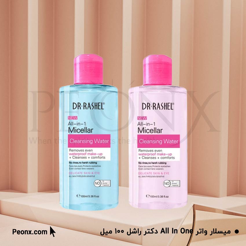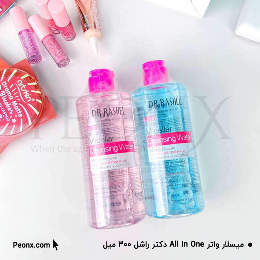 میسلار واتر آل این وان دکتر راشل، در دو رنگ آبی و صورتی و در دو حجم 100 میل و 300 میل عرضه میشود.