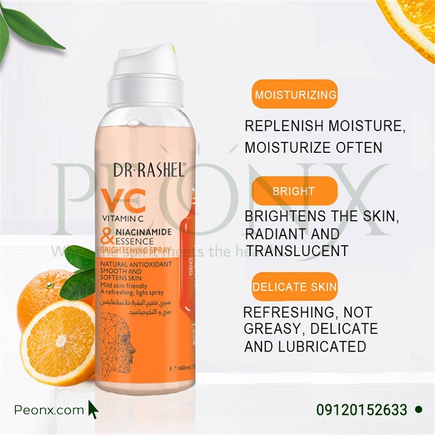 اسپری آبرسان و روشنکننده ویتامین C و نیاسینامید یک محصول مراقبت از پوست بوده که توسط شرکت دکتر راشل عرضه شدهاست. دکتر راشل یک برند معتبر از محصولات بهداشتی و آرایشی میباشد. این برند با موفقیت، اعتماد هزاران مشتری را در سراسر جهان بهدست آورده. تمام محصولات دکترراشل مورد آزمایش قرارگرفته و تأیید شده است. بنابراین، میتوان با اطمینان گفت که محصولات دکترراشل 100٪ اصل بوده و مزایای بسیاری برای پوست دارد.